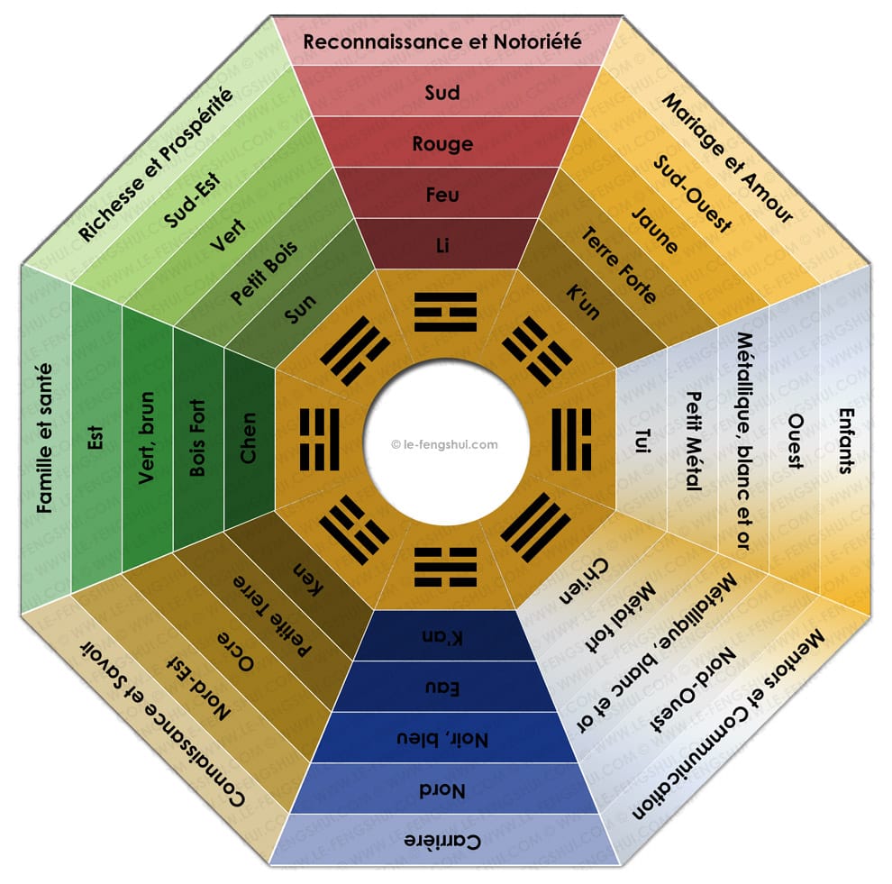 L’un des outils les plus importants du Feng Shui est le Bagua, une carte énergétique de votre espace de vie. C’est un peu comme le GPS de votre maison. Il vous aide à comprendre comment les différentes zones de votre maison sont liées à différents aspects de votre vie.